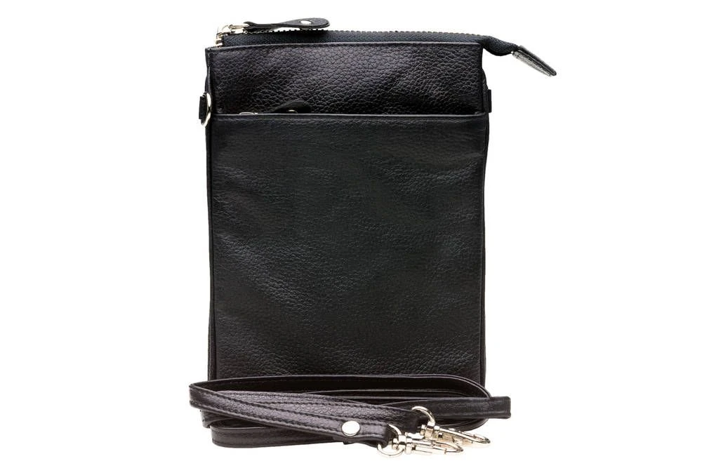 Näppärä nahkainen pikkulaukku pitkällä irroitettavalla olkahihnalla. Laukussa on vetoketjullinen päätasku, jossa on kaksi lokeroa, korttipaikat sekä pieni vetoketjutasku. Haitarimallinen pohja antaa hyvin tilaa silloin, kun laukussa on enemmän tavaraa. Lisäksi laukun etupuolella on kätevä vetoketjutasku. Tämä laukku sopii hyvin esimerkiksi matkalle mukaan, sillä passi ja puhelin mahtuu juuri sopivasti laukkuun. Laukussa on RFID-suojaus, joka estää sirullisen etäluettavien korttien ja sirullisen passin etäluvun.