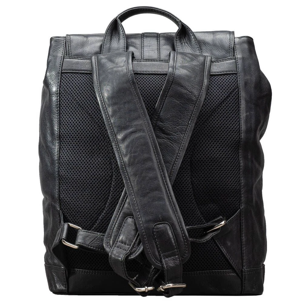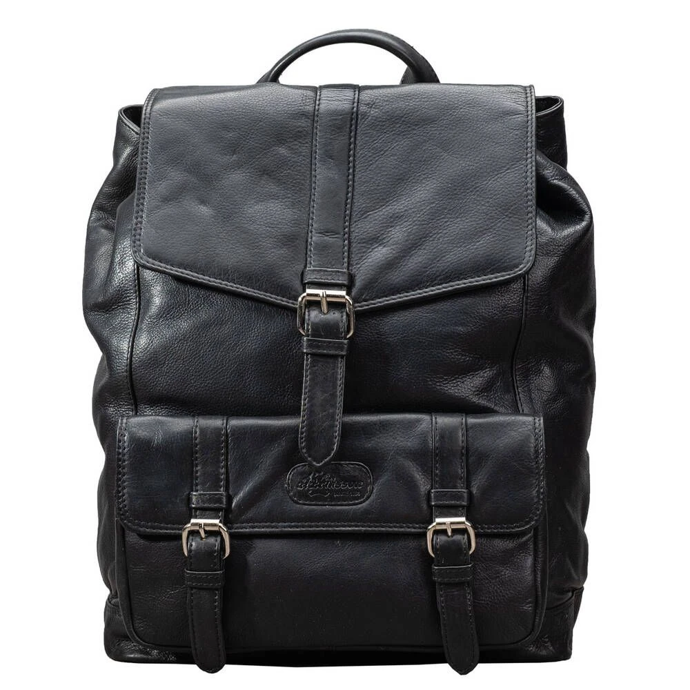 Iso reppu pehmeästä nahasta. Repussa on yksi iso osasto, jossa on pehmustettu tasku läppärille, pari avotaskua ja vetoketjutasku. Repun iso suuaukko helpottaa tavaroiden lastaamista.