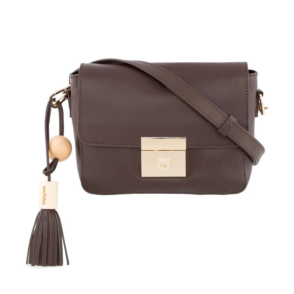 Ihastuttava Helmi-laukku on valmistettu laadukkaasta kasviparkitusta nahasta. Laukussa on säädettävä ja irrotettava olkahihna sekä laukkukoru. Laukun sisäpuolella on vetoketjullinen sivutasku ja tyylin viimeistelee Aarikan klassinen Lemmikki-kuosinen puuvillavuori. Suomalaista designia joka ihastuttaa jokapäiväisessä käytössä.