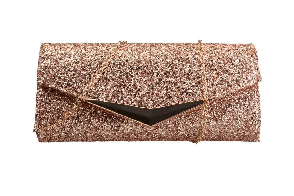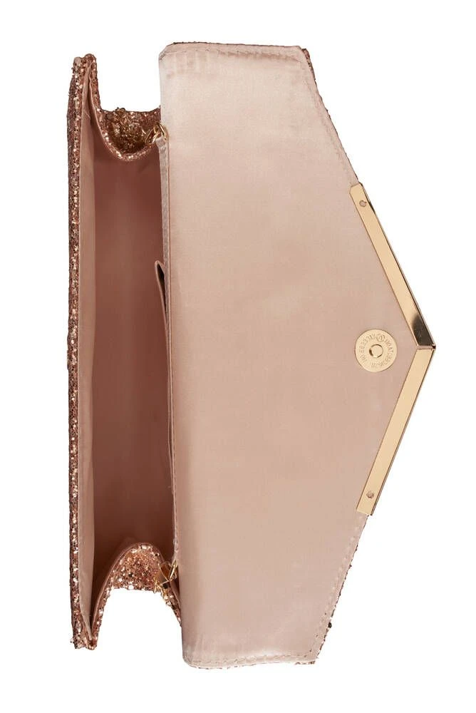 Kimaltava juhlalaukku irrotettavalla olkahihnalla.