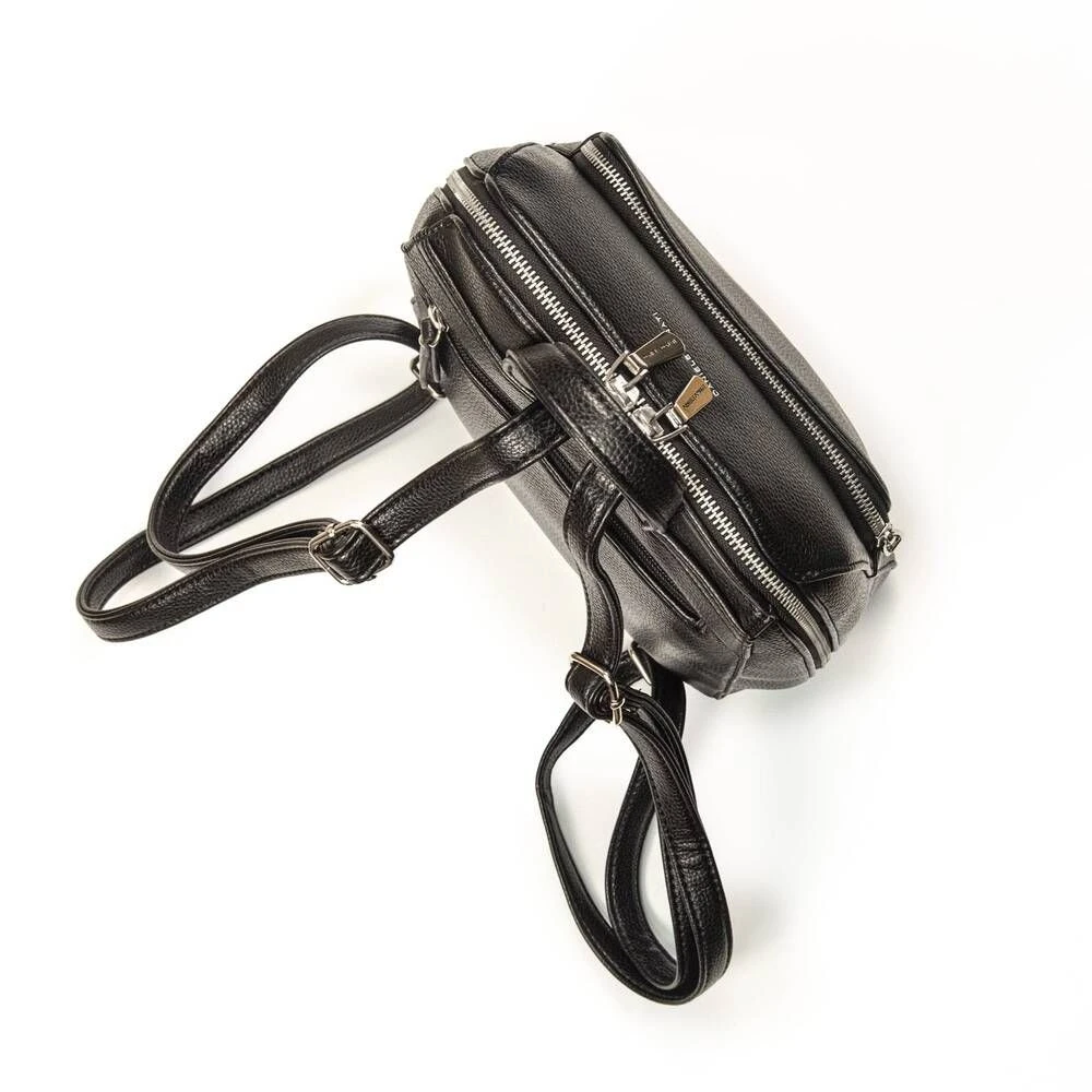 Laadukas, pehmeä ja silti ryhdikäs reppu, jonka etu- ja takapuolella on kätevät vetoketjutaskut. Sisällä on lisäksi avo- sekä vetoketjutasku.