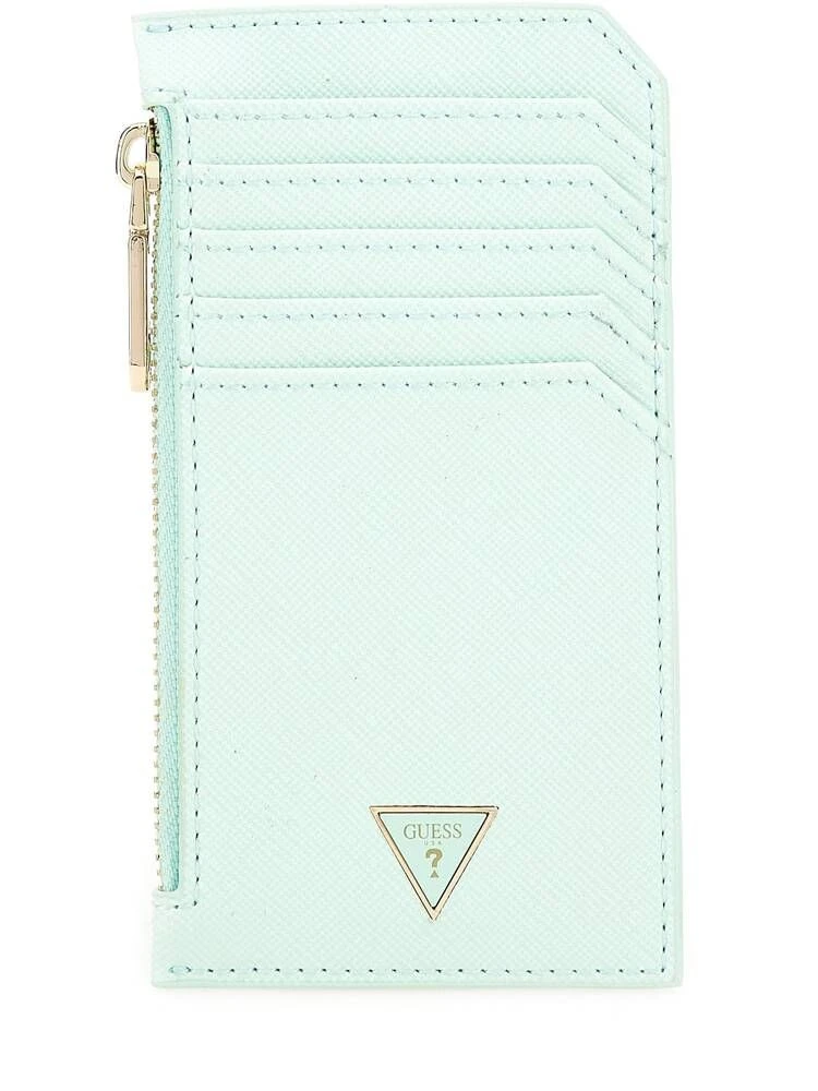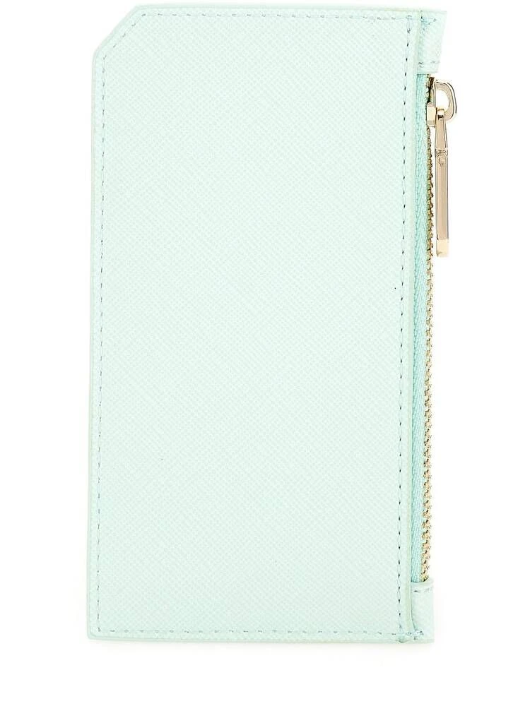 Mintun värinen pieni korttikotelo tärkeimmille korteille. Kotelossa on korttipaikkojen lisäksi vetoketjullinen tasku.