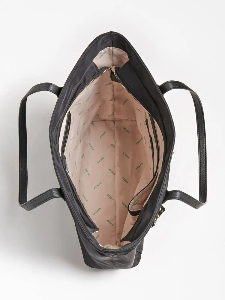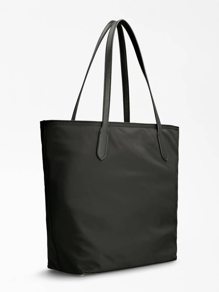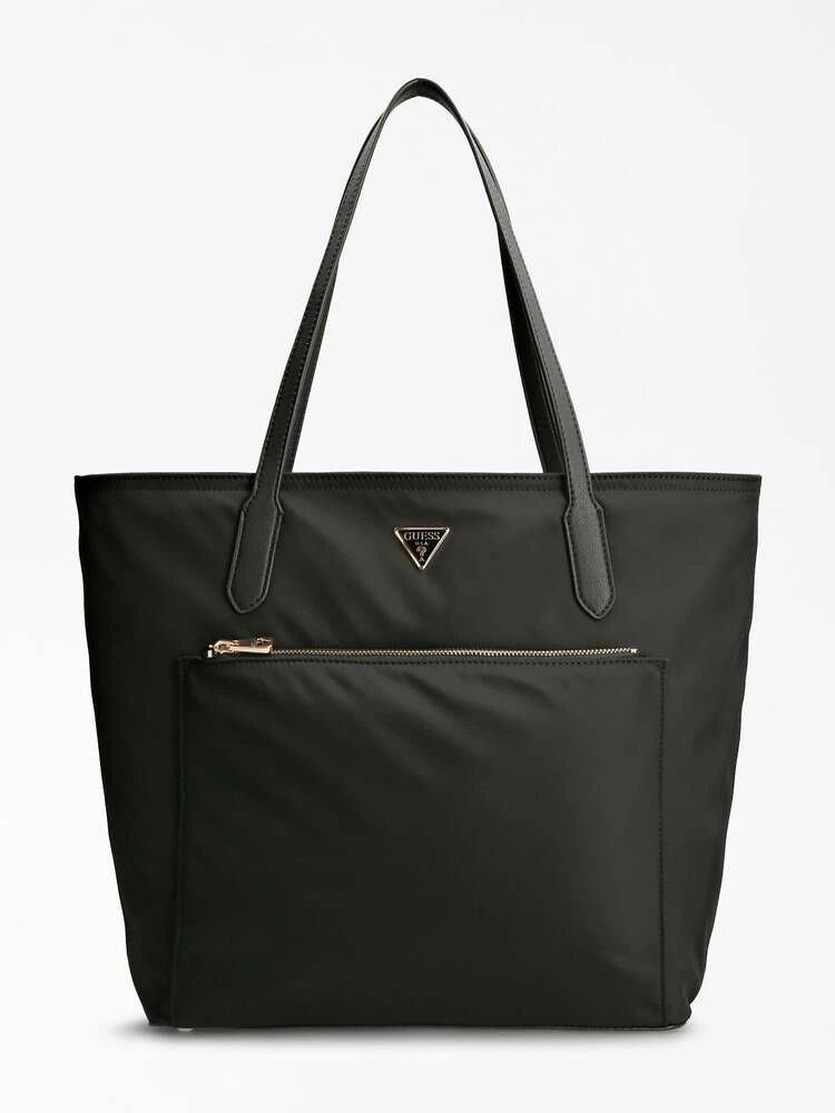 Tyylikäs yksivärinen tekstiililaukku tilavalla etutaskulla.