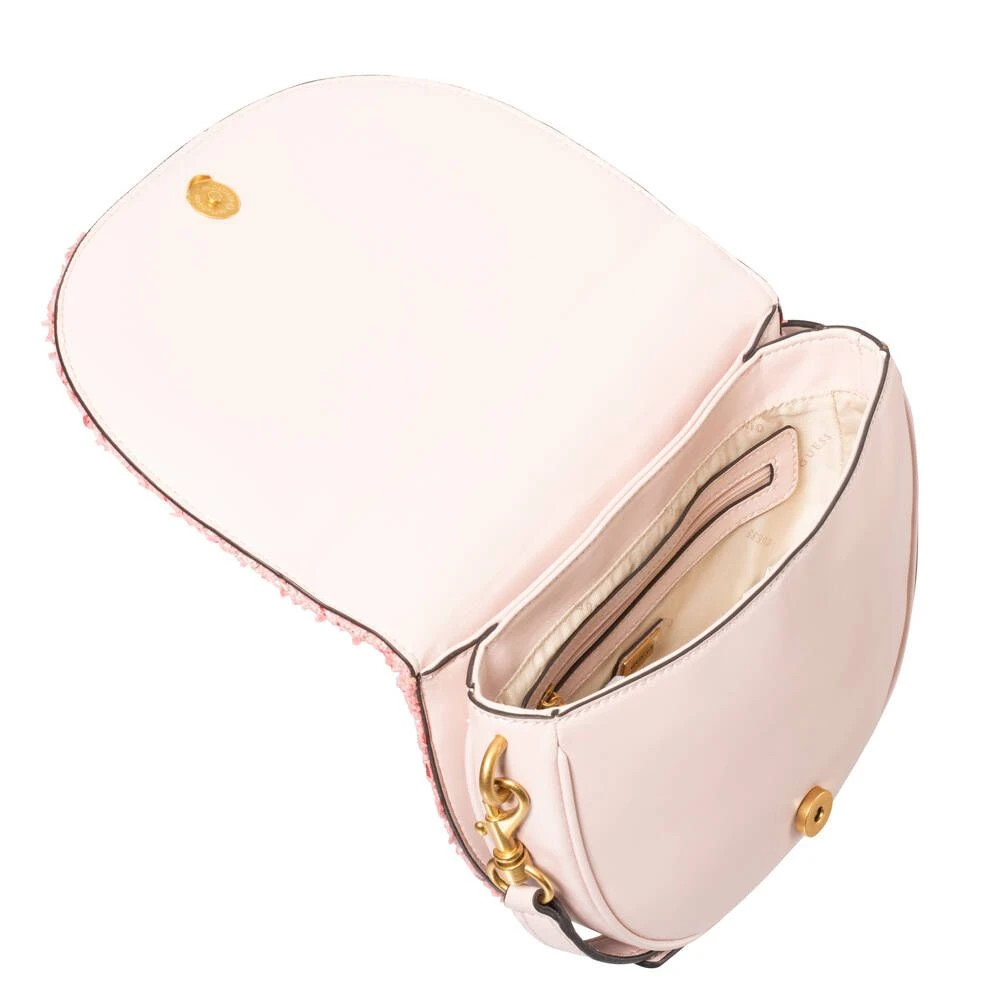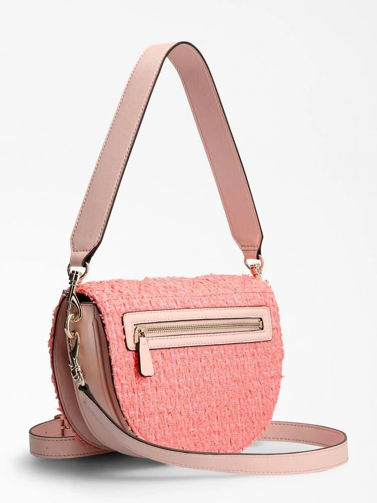 Upea tikattu bucklee-pintainen laukku, pitkällä ja lyhyellä olkahihnalla.