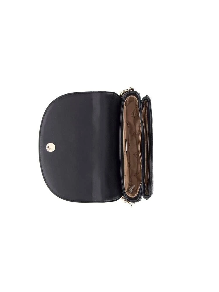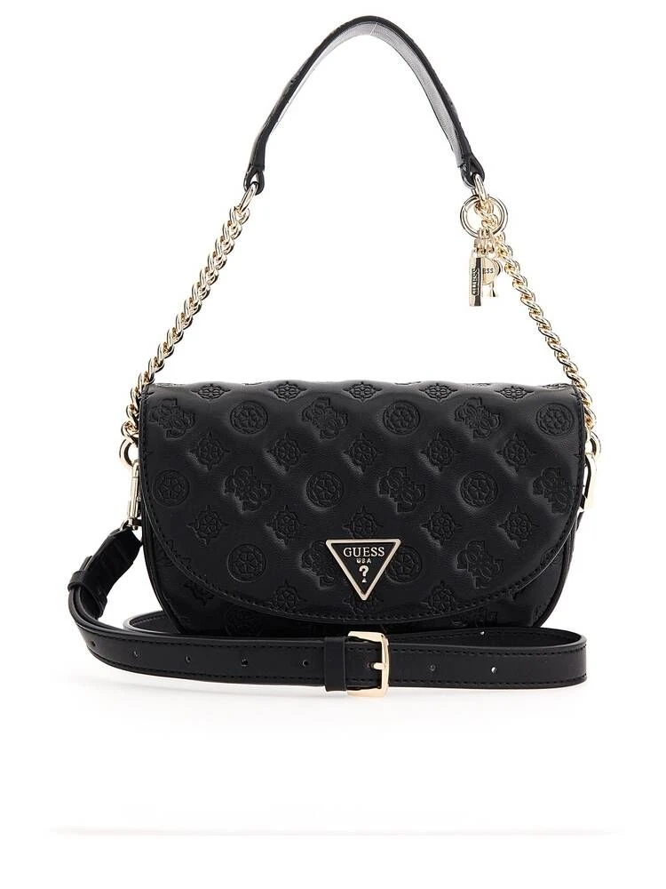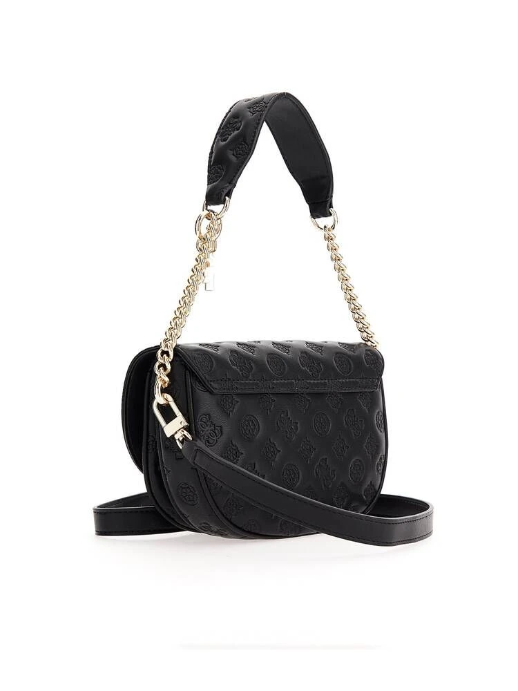 Naisten laukku pionilogo-pinnalla ja hopeisilla yksityiskohdilla.