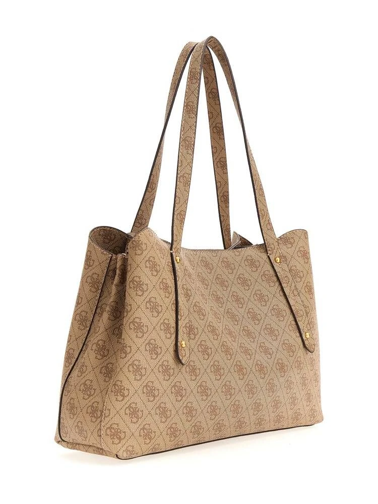 Guessin laukku logokuvioidulla pinnalla. Laukussa tulee mukana pussukka käsikahvalla.