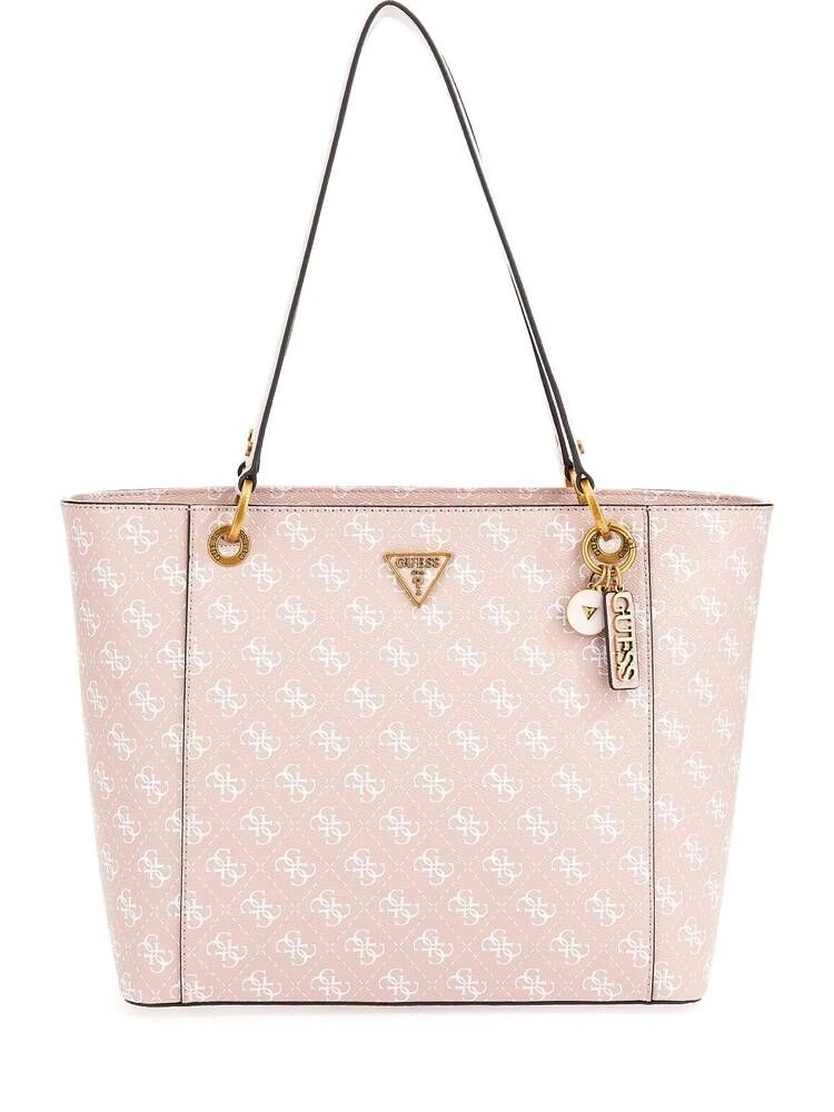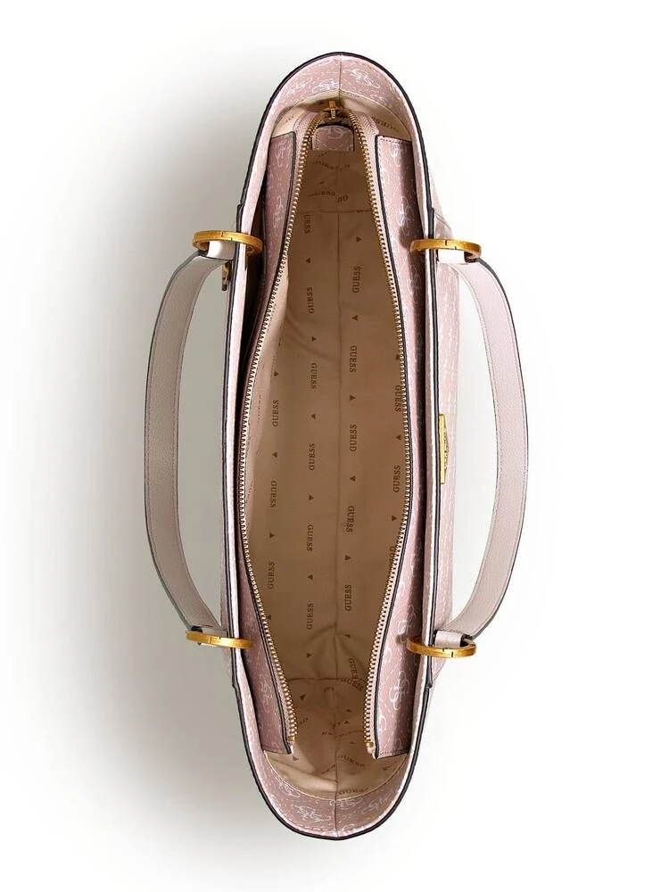 Guessin tilava laukku logokuvioidulla pinnalla.