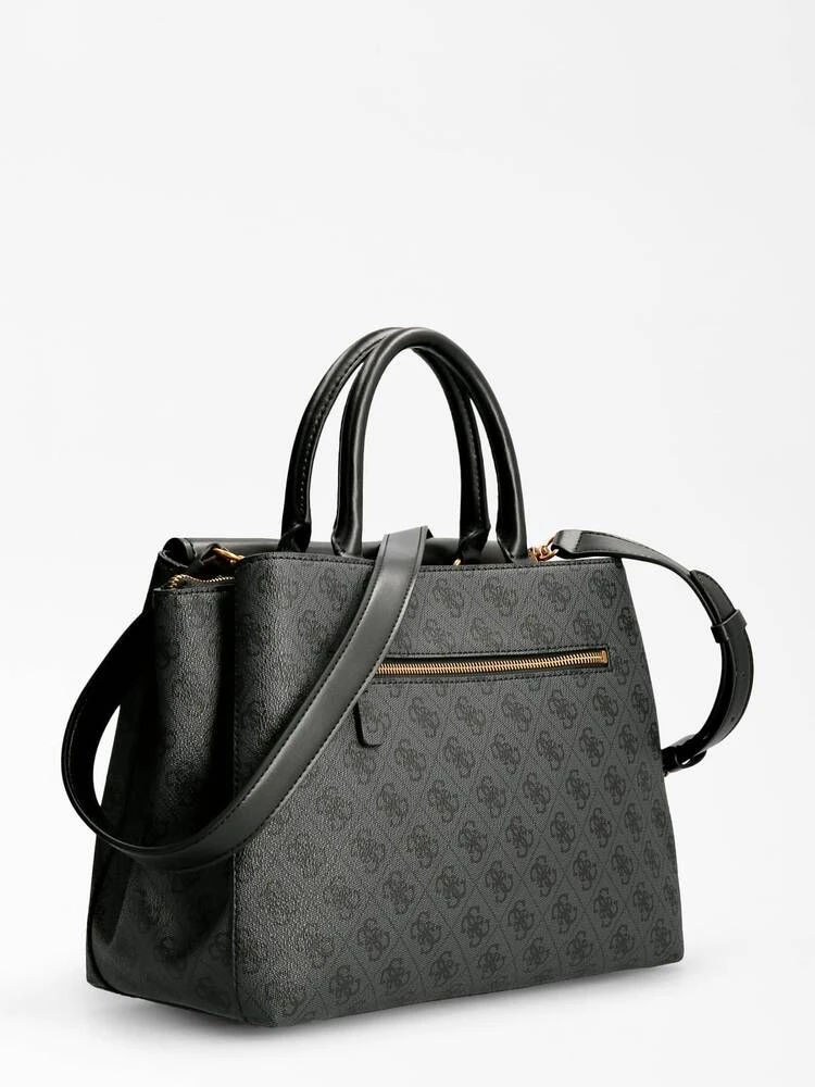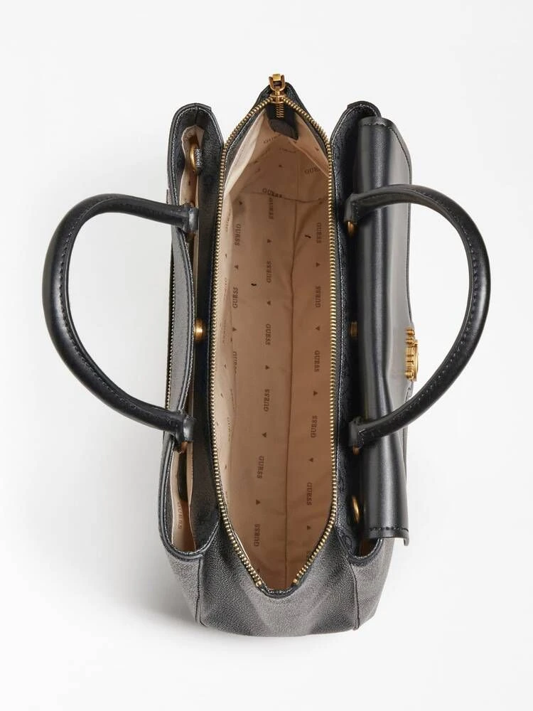 Guess logokuvioitu laukku. Laukussa on kolme erillistä osiota.