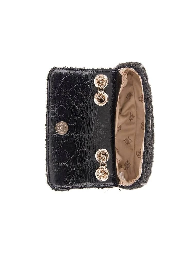 Kaunis pieni Guess-laukku buklee-pinnalla. Laukussa on siro ketjuolkain ja Guess-logo.