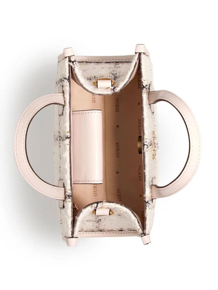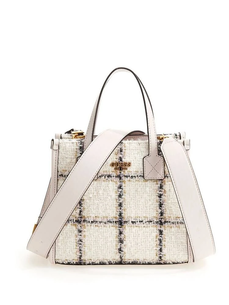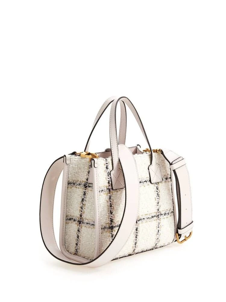 Tyylikäs ruutubucklee-pintainen laukku käsikahvalla ja irroitettavalla olkahihnalla.Laukussa on pieni kirjainlogo edessä.