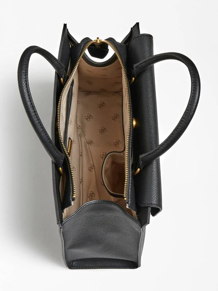 Tyylikäs Guessin laukku kantakahvoilla sekä olkahihnalla. Olkahihnassa on ketjua.
