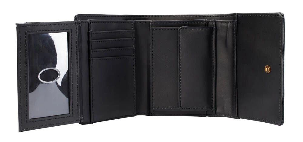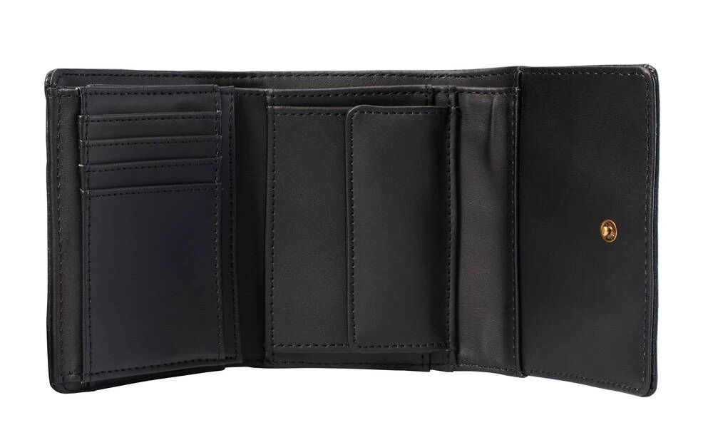 Ihana pikkulompakko struktuurisella pinnalla ja nepparikiinnityksellä. Edessä on näyttävä kolmiologo.