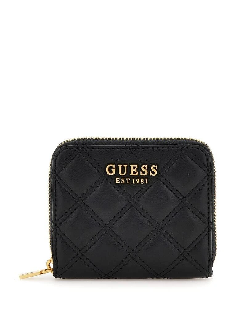 Ruututikattu pikkulompakko vetoketjulla ja etupuolen näyttävällä Guess-kirjainlogolla.