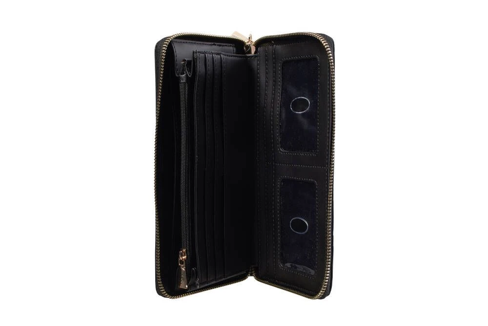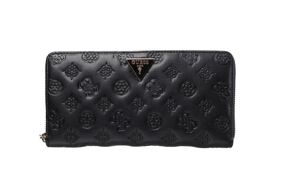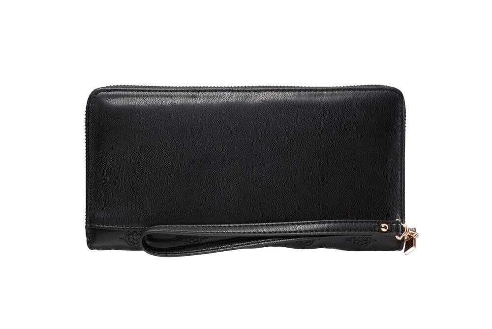 Tyylikäs lompakko pionilogo-pinnalla ja rannelenkillä.
