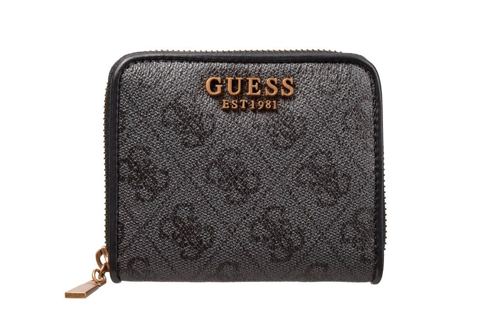 Guessin lompakko logokuvioidulla pinnalla.