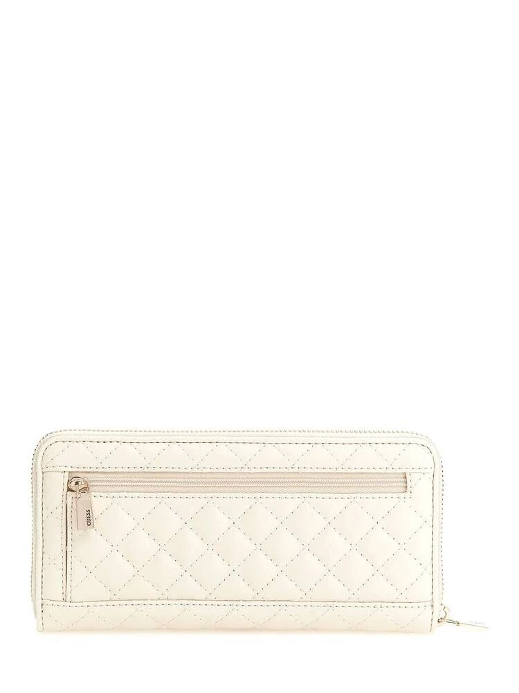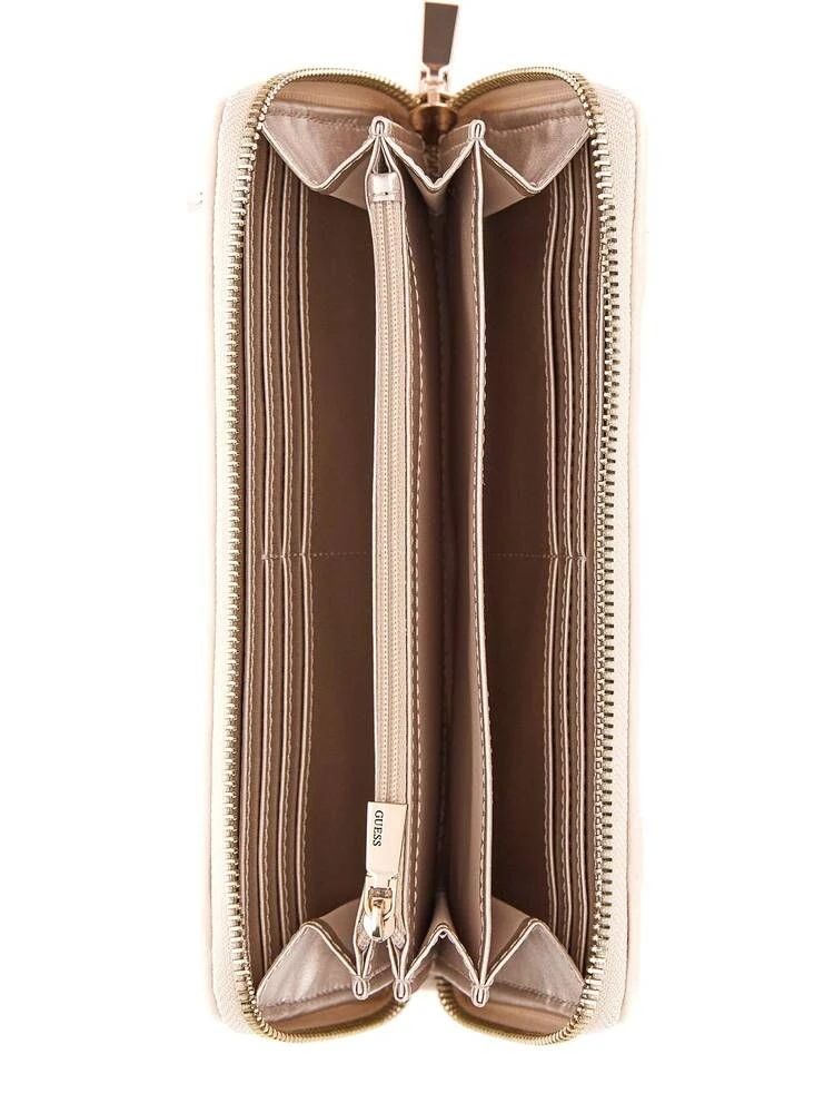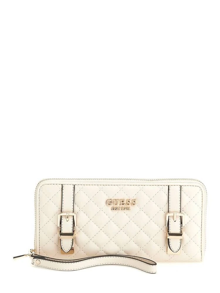 Ruututikattu lompakko vetoketjukiinnityksellä. Lompakossa on irrotettava rannelenkki ja etupuolella Guess-kirjainlogo.
