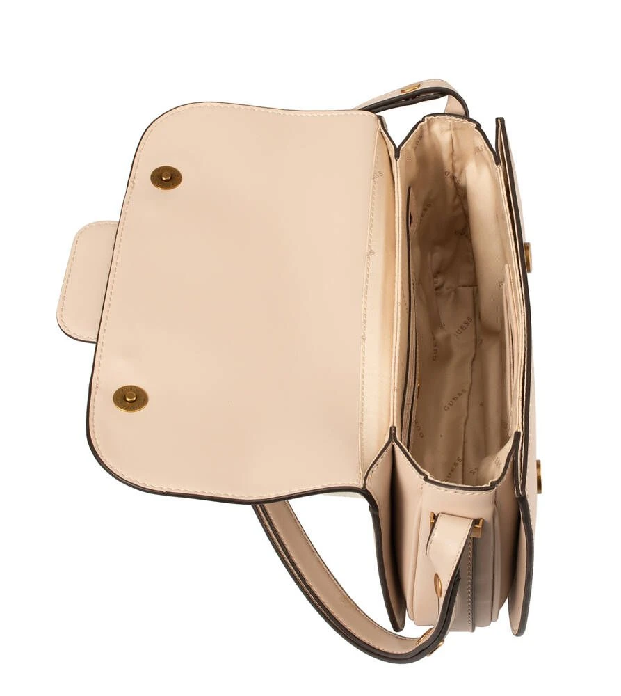 Trendikäs olkalaukku lyhyellä olkahihnalla. Guess -logokoriste laukun edessä.