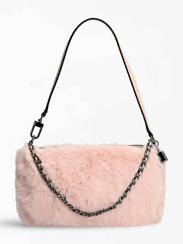 Söpö karvapintainen vaaleanpunainen Guessin laukku.