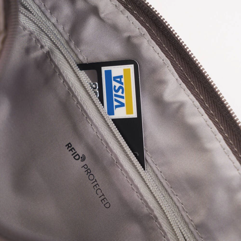 Monipuolinen ja kevyt laukku useilla taskuilla. Laukun sisällä on RFID-suojattu tasku.