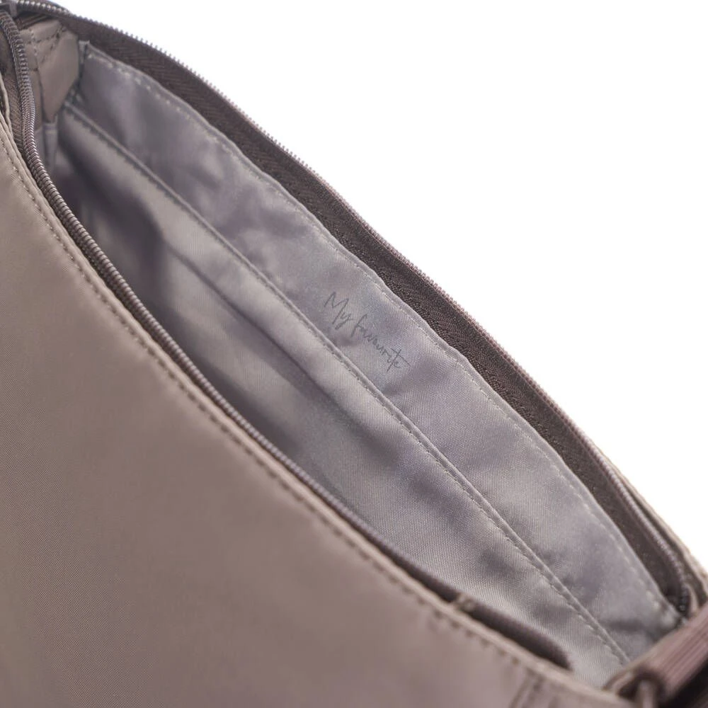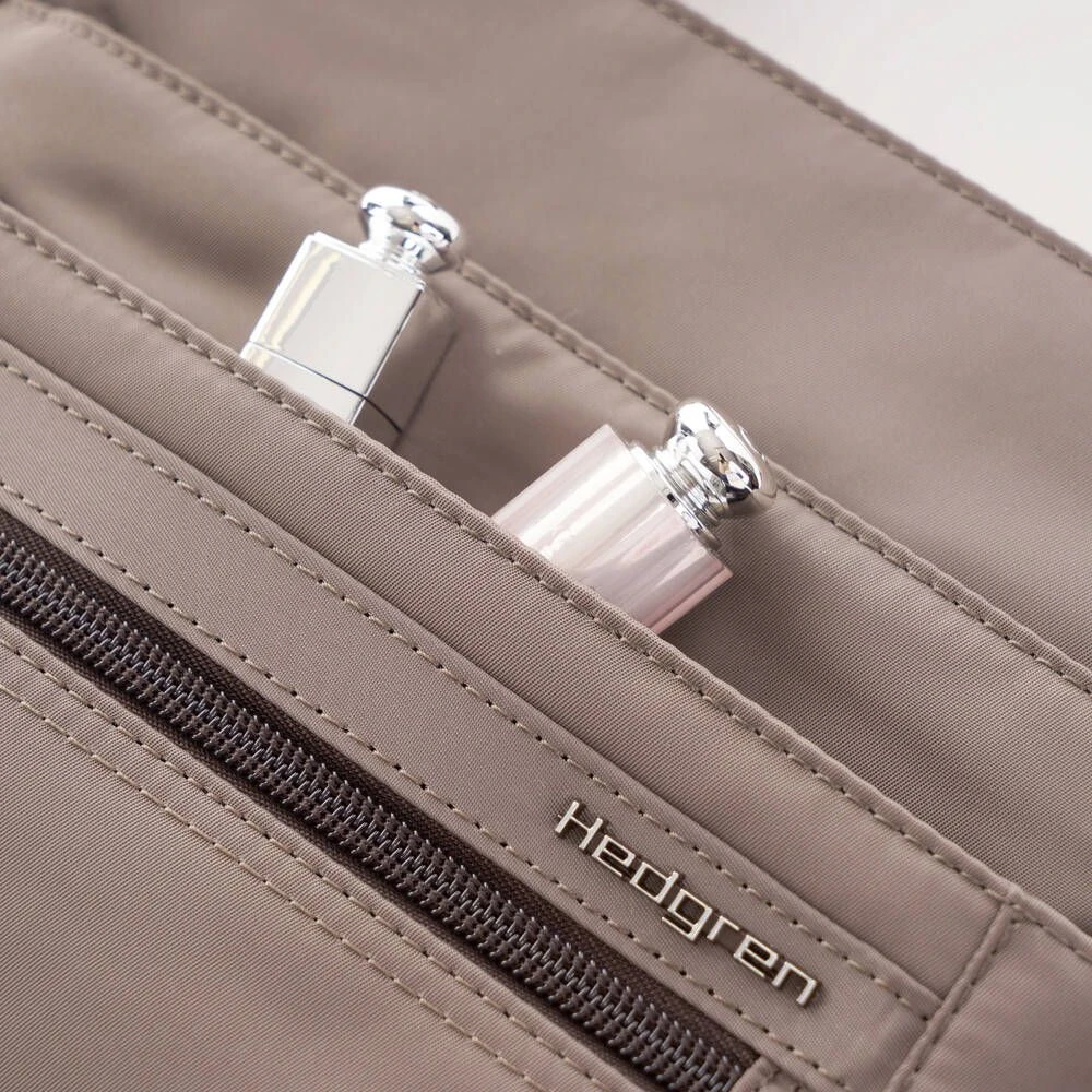 Monipuolinen ja kevyt laukku useilla taskuilla. Laukun sisällä on RFID-suojattu tasku.