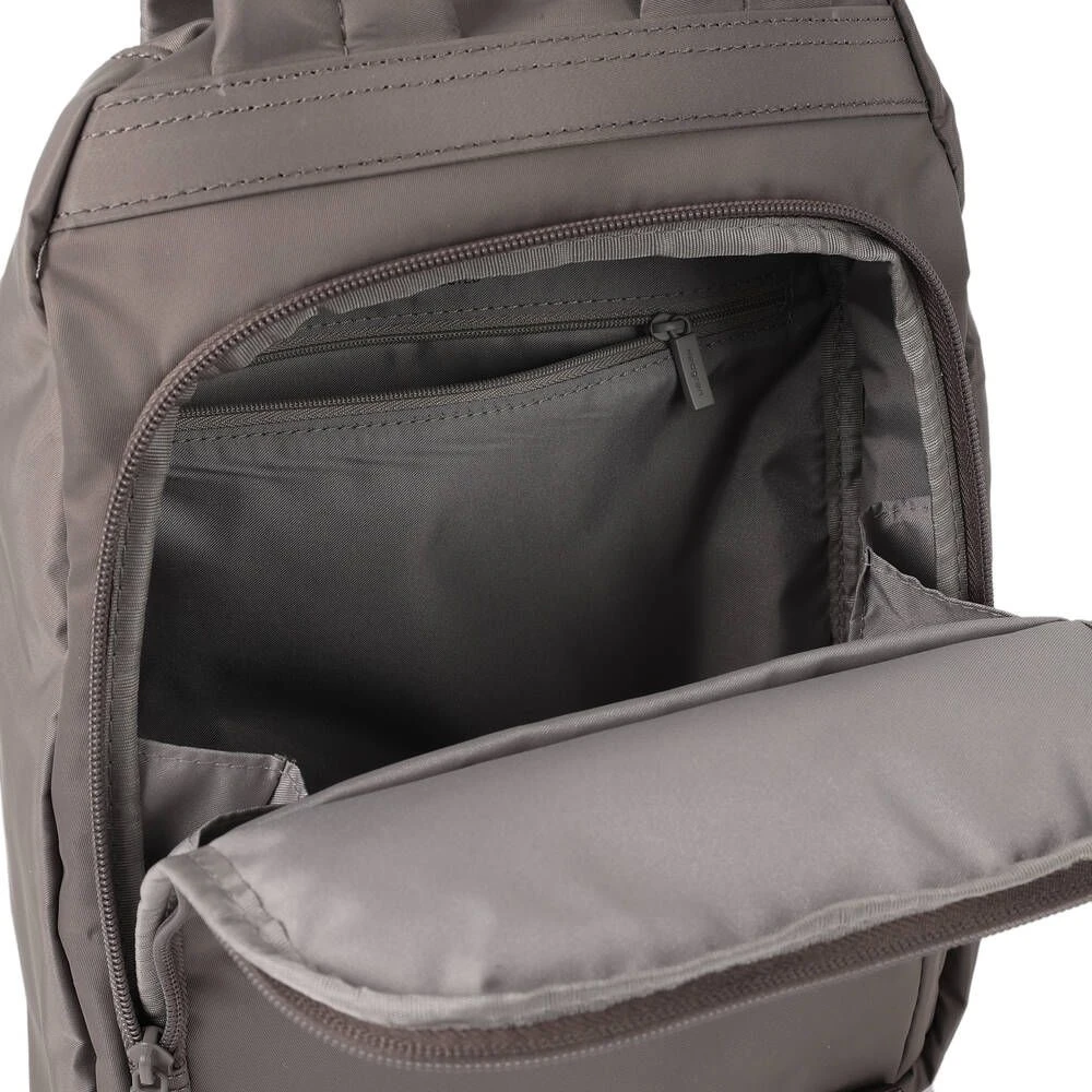 Pieni ja todella kevyt reppu kaupungille tai vaikka matkalle mukaan. Repun päätasku avataan selkäpuolelta ja selkää vasten on pehmustettu tablettitasku. Lisäksi laukussa on vetoketjullinen RFID-suojattu sisätasku, jossa pysyy lähimaksukortit ja esimerkiksi sirullinen passi turvassa etäluvulta.