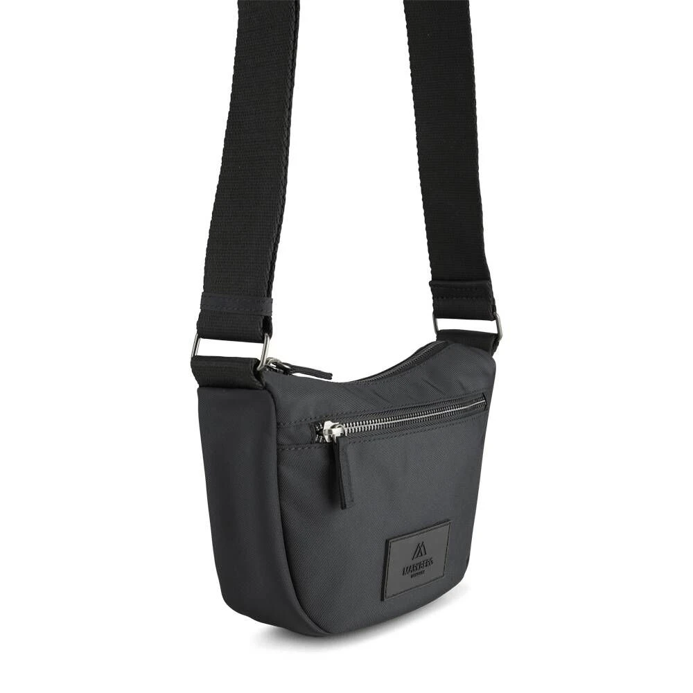Naisten yksinkertaisen tyylikäs olkalaukku vetoketjutaskulla ja pienellä Markberg-logolla. Laukussa on vettähylkivä ja repeytymätön tekstiilipinta.