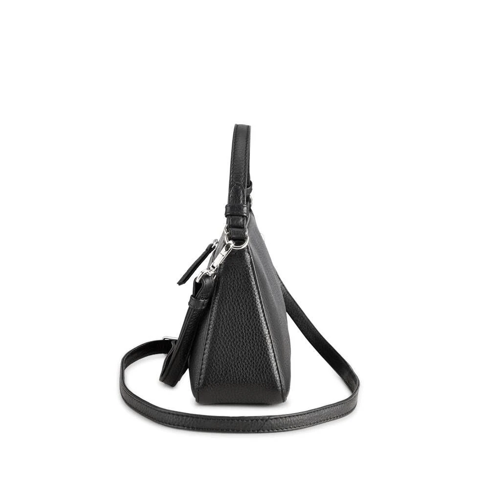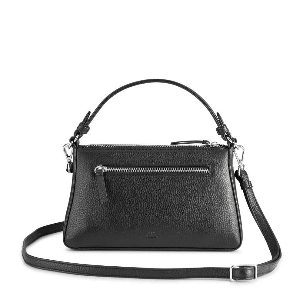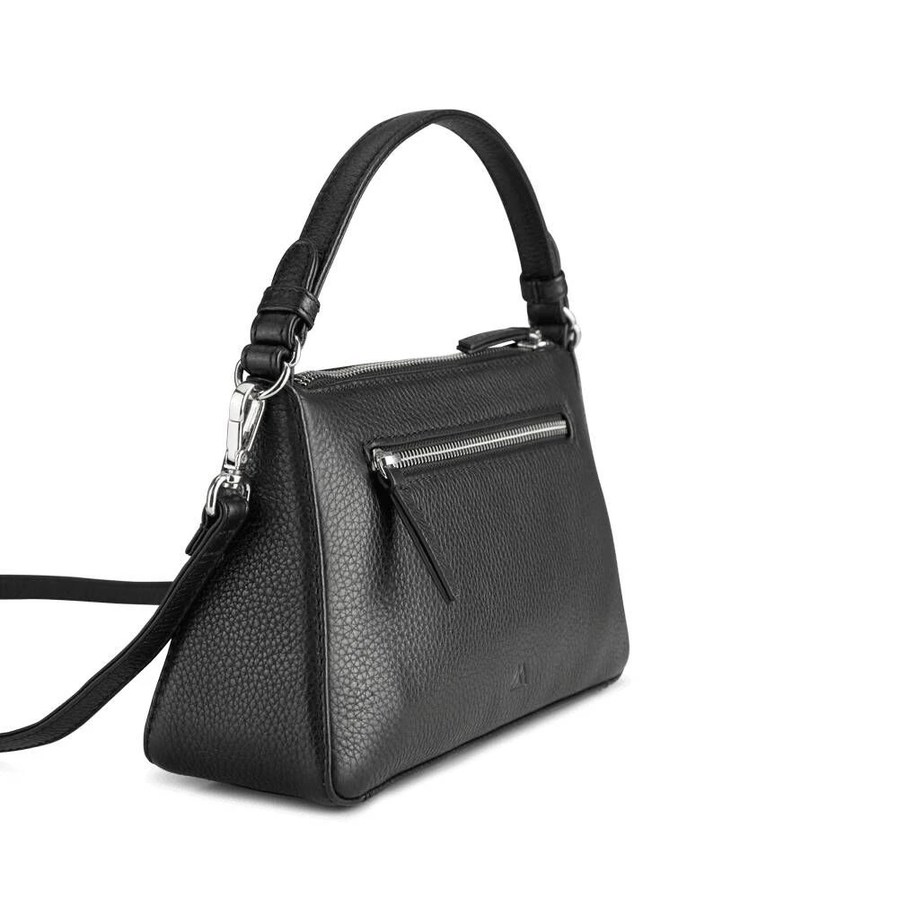 Naisten nahkainen olkalaukku lyhyellä käsihihnalla sekä irrotettavalla ja säädettävällä olkahihnalla.