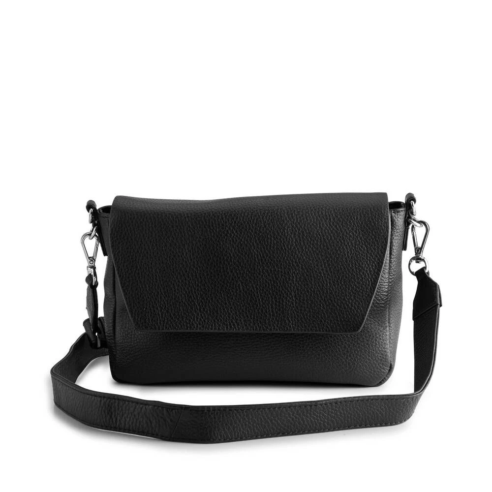 Naisten nahkapintainen olkalaukku lyhyellä irrotettavalla käsihinalla sekä säädettävällä ja irrotettavalla olkahinalla. Laukussa on magneettinappikiinnitys.