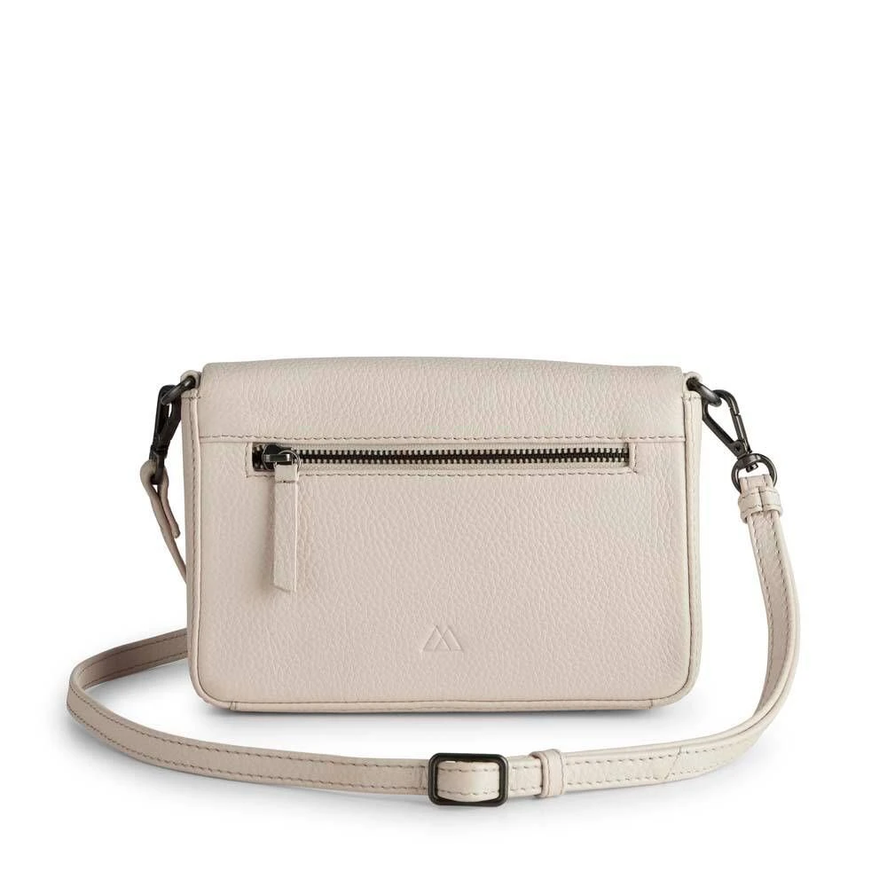 Naisten tyylikäs nahkainen olkalaukku irrotettavalla ja säädettävällä olkahihnalla. Laukussa on takana vetoketjutasku.