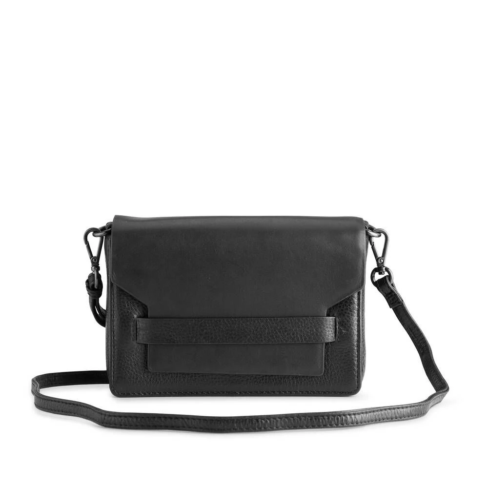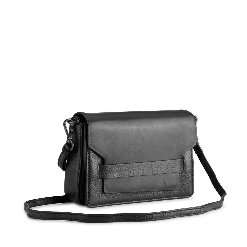 Naisten nahkapintainen olkalaukku irrotettavalla ja säädettävällä olkahihnalla. Läpässä on piilomagneettikiinnitys.