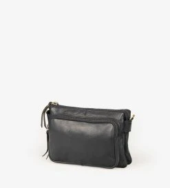 Puolipyöreä toiletlaukku nahkaisella pinnalla ja vetoketjukiinnityksellä.