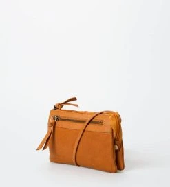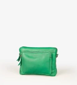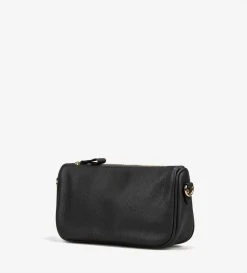 Puolipyöreä toiletlaukku nahkaisella pinnalla ja vetoketjukiinnityksellä.